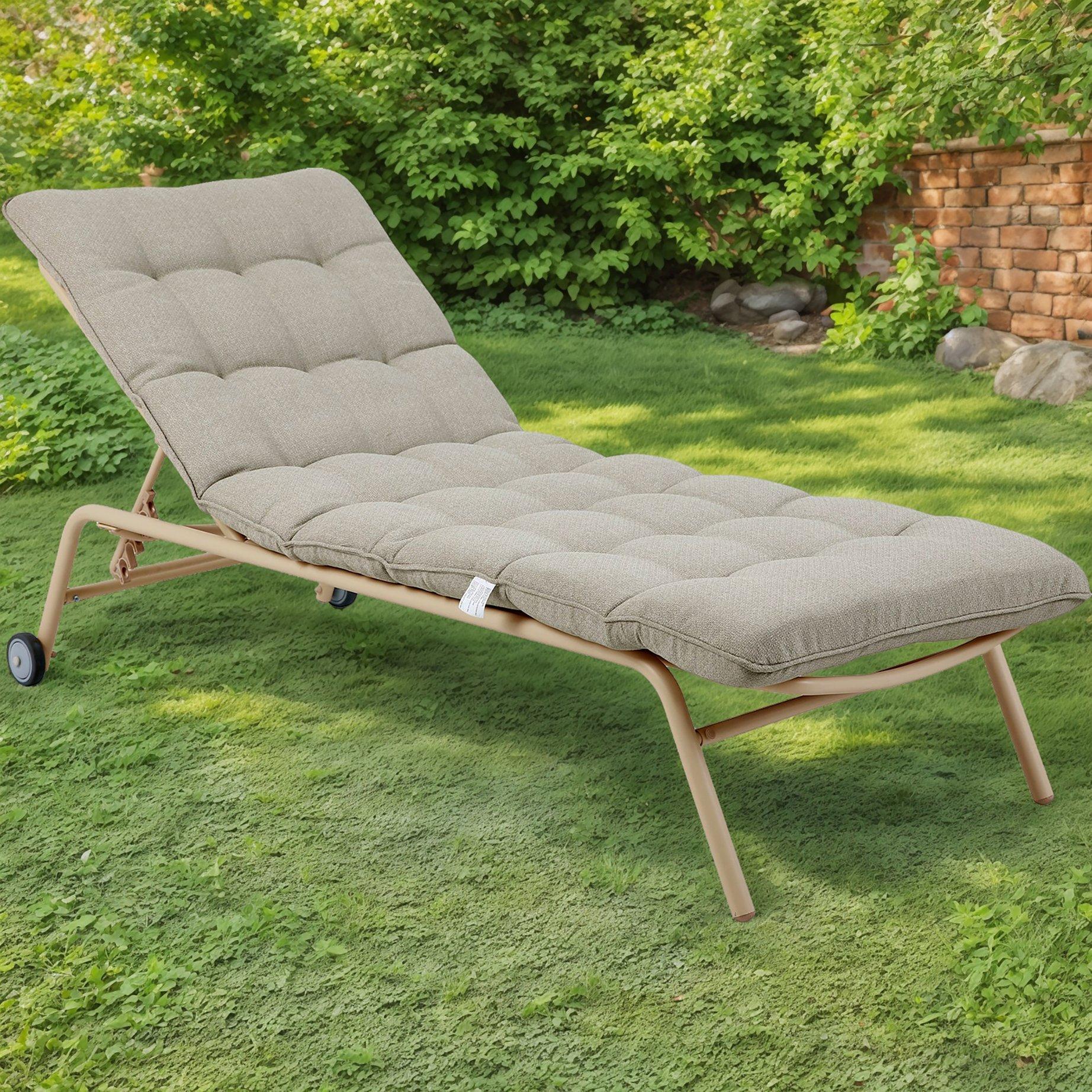 Fancy lamamistool on valmistatud kvaliteetsetest materjalidest, sealhulgas vastupidavast terasest ja pehmest polüestrist, mis tagavad toote pika eluea ja vastupidavuse. Elegantses beežis toonis lamamistool lisab teie väliruumidesse silmapaistvat stiili ja soojust.