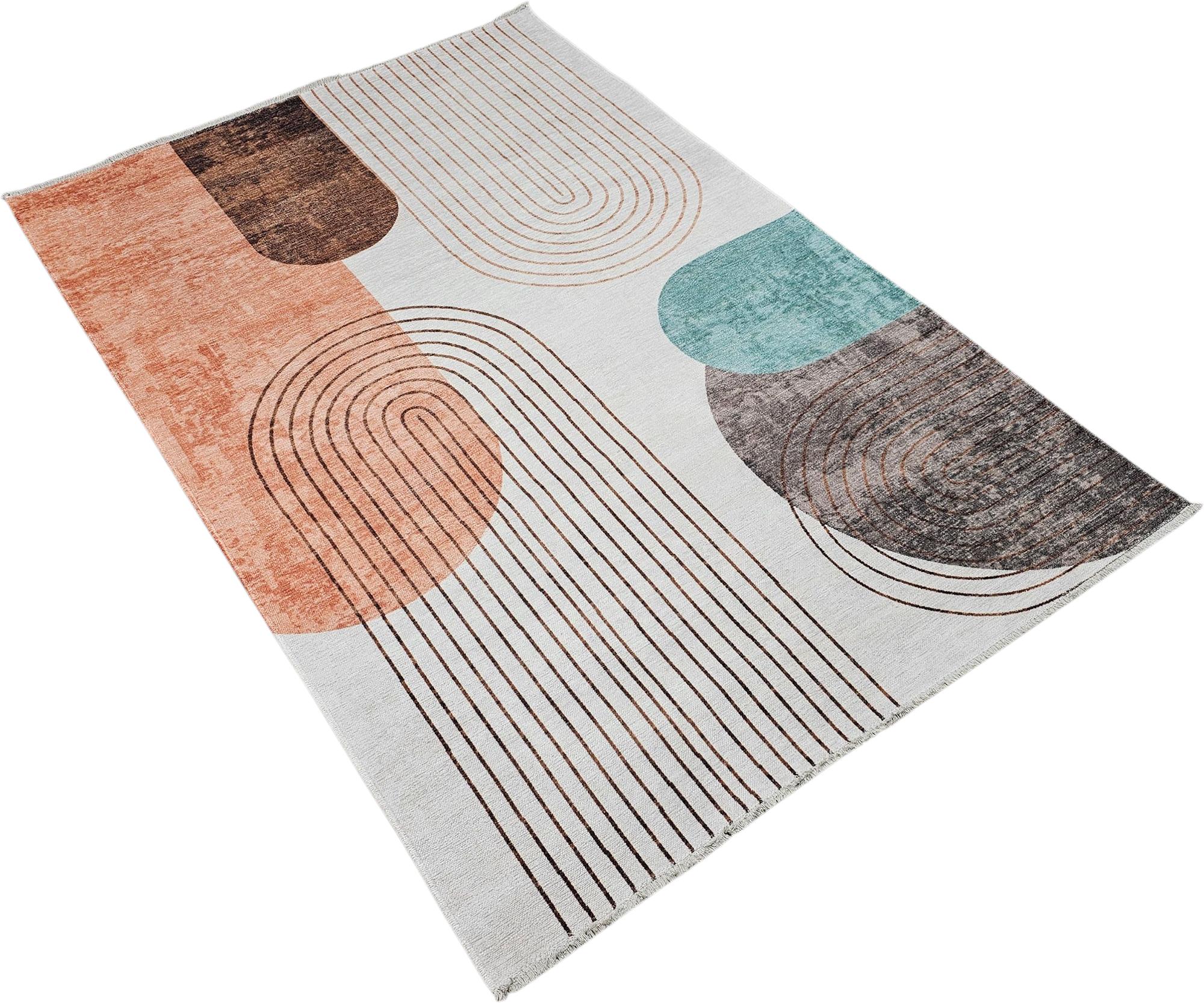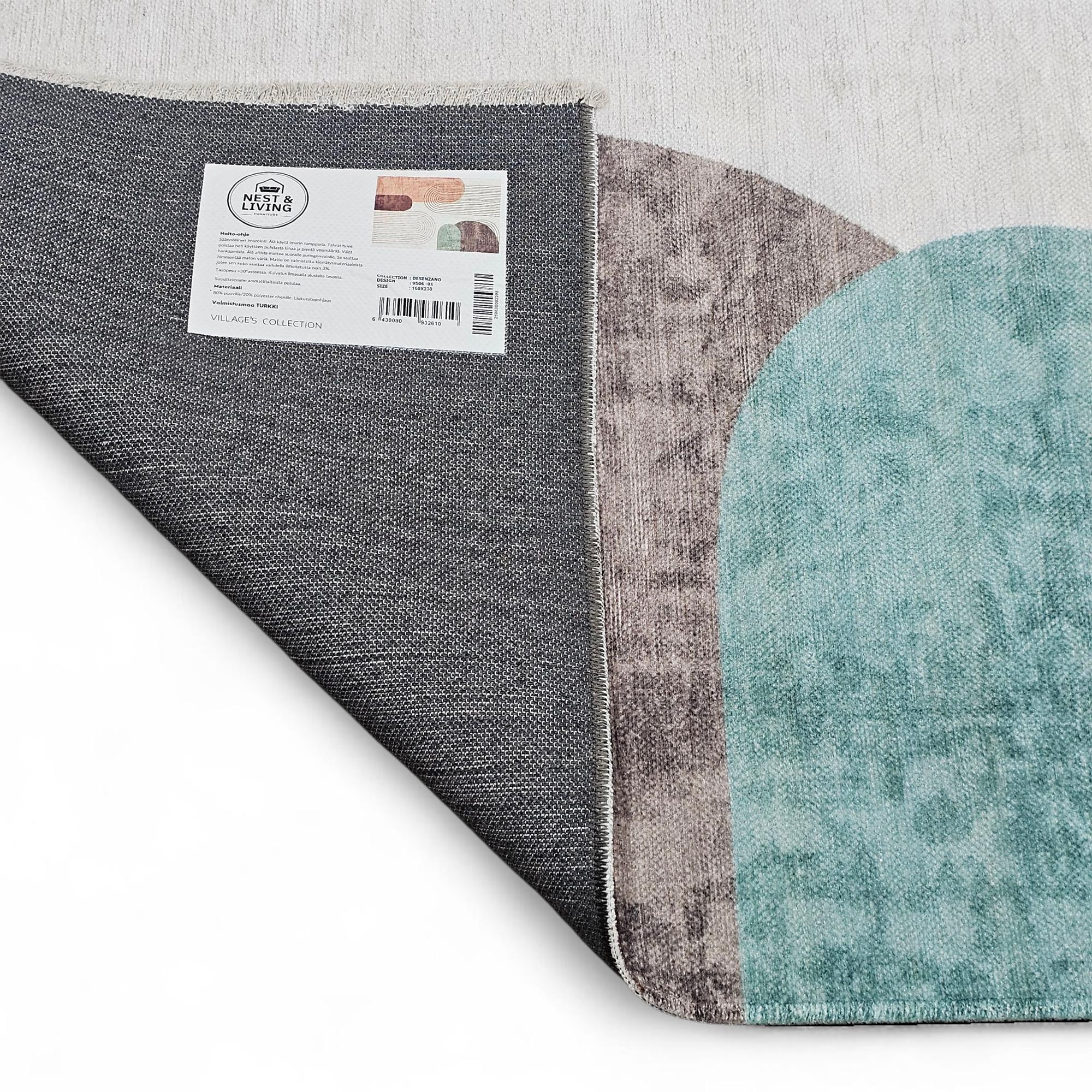 Desenzano vaip 160×230 cm, graafilise mustri ja pehmete toonidega, valmistatud puuvillast ja polüester-šeniilist, libisemisvastase põhjaga.