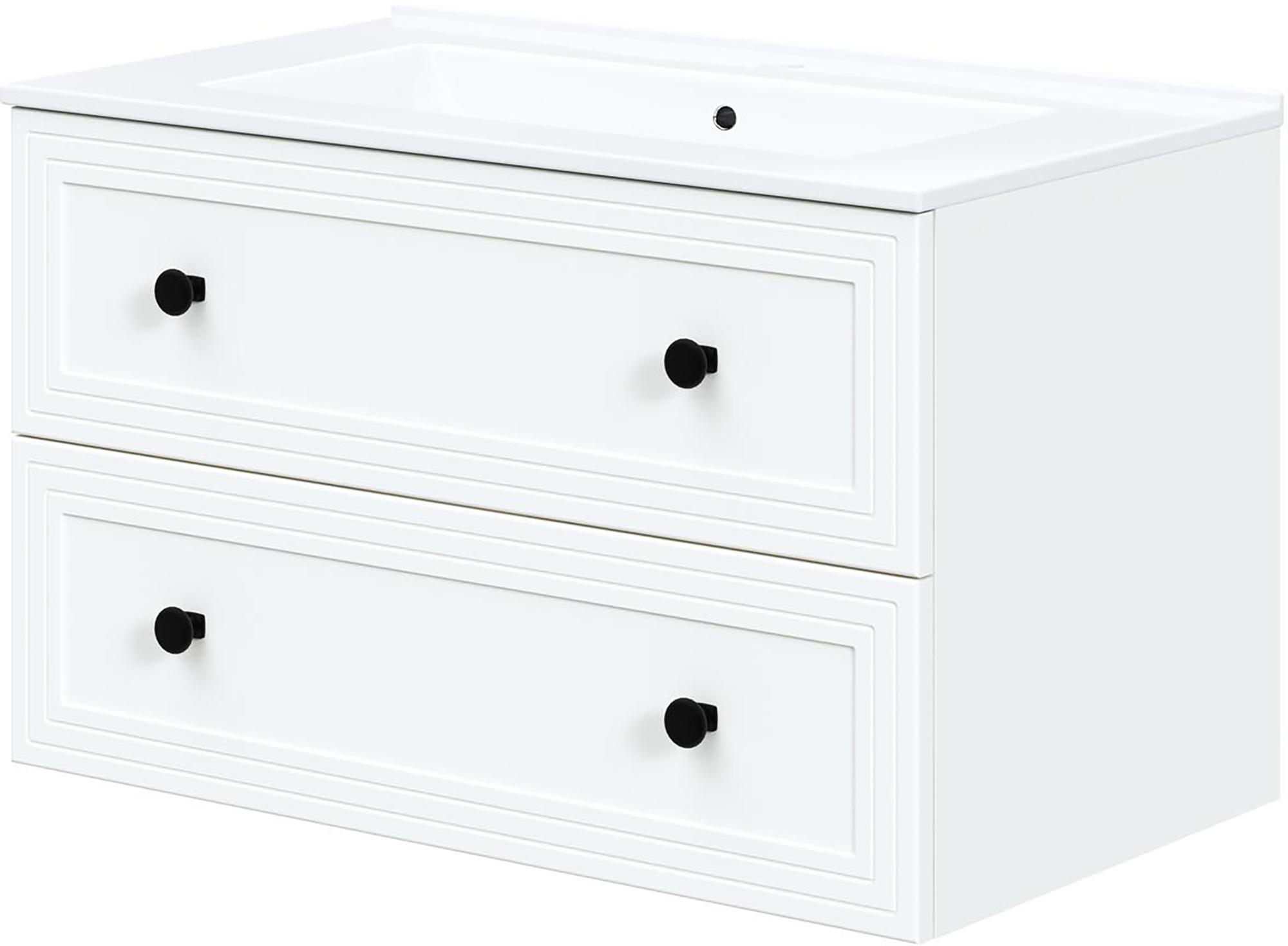 Luoto valamukapp 80 cm, valge – modernne ja praktiline vannitoakapp kahe sahtliga, ajatus valges viimistluses.