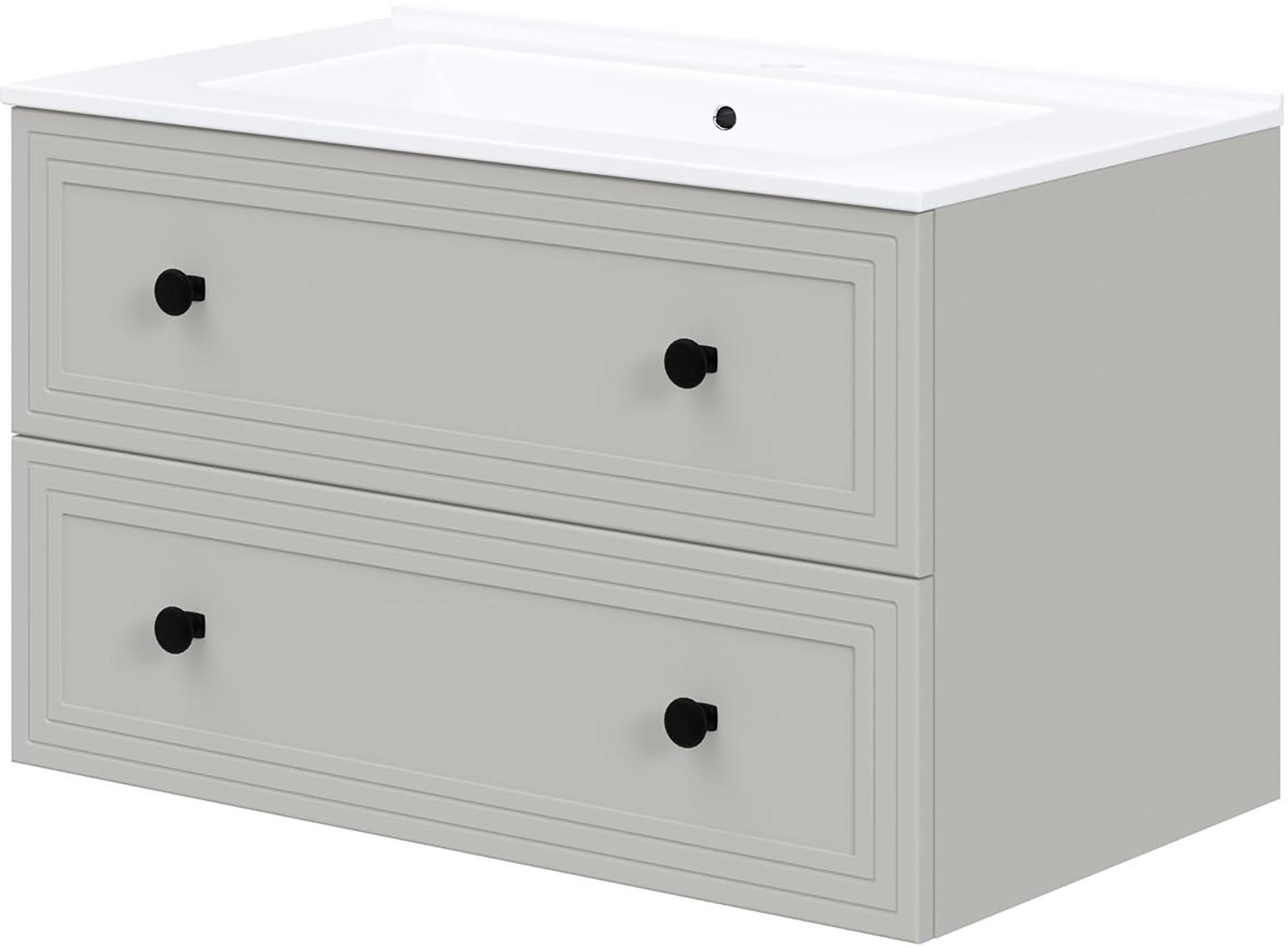 Luoto valamukapp 80 cm, kashmir – elegantne ja funktsionaalne vannitoakapp kahe sahtliga, mille pehme toon loob rahuliku ja kaasaegse ilme.