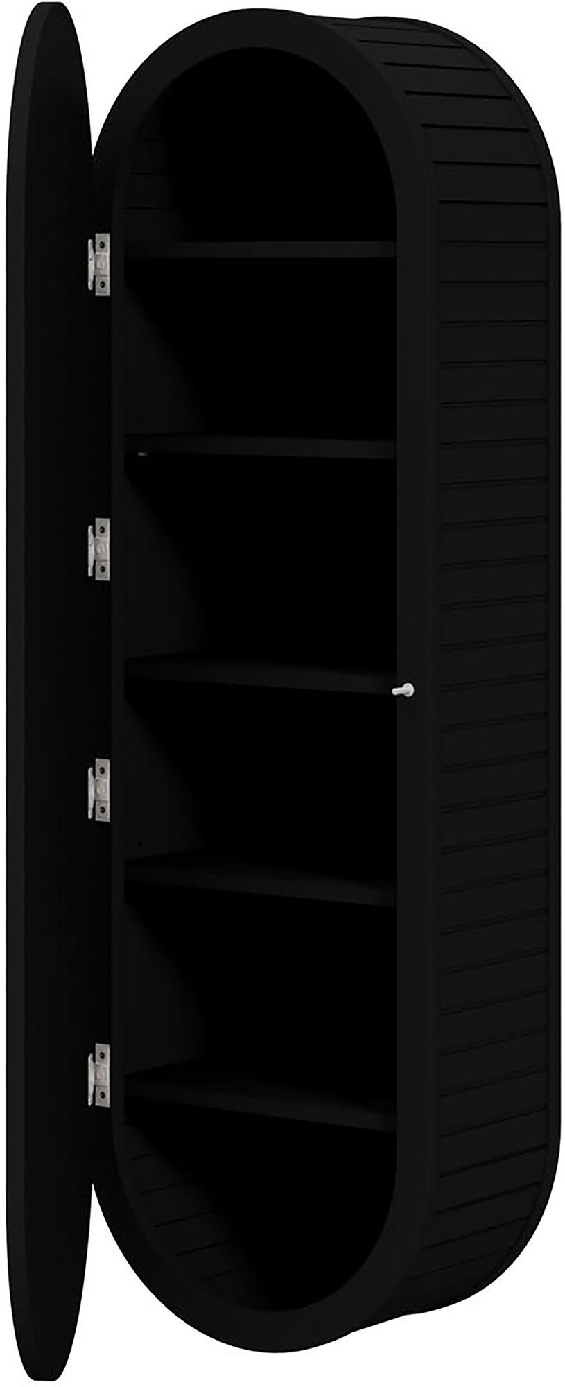 Loiske seinakapp, must – luksuslik ja julge valik, mis ühendab skulpturaalse disaini ning praktilise hoiuruumi, tuues vannituppa sügavust ja iseloomu.