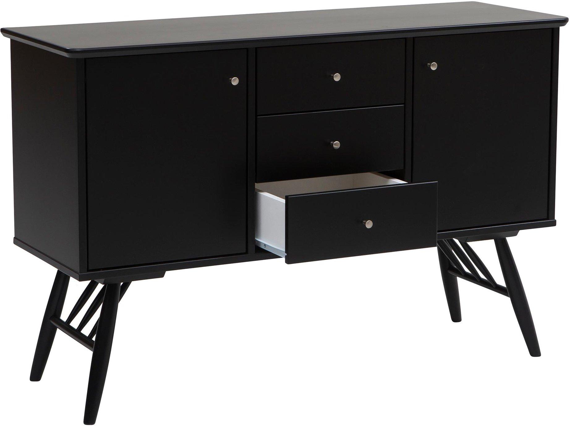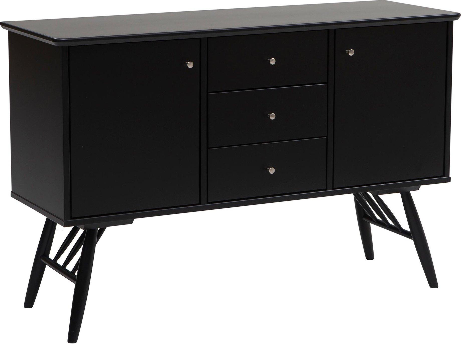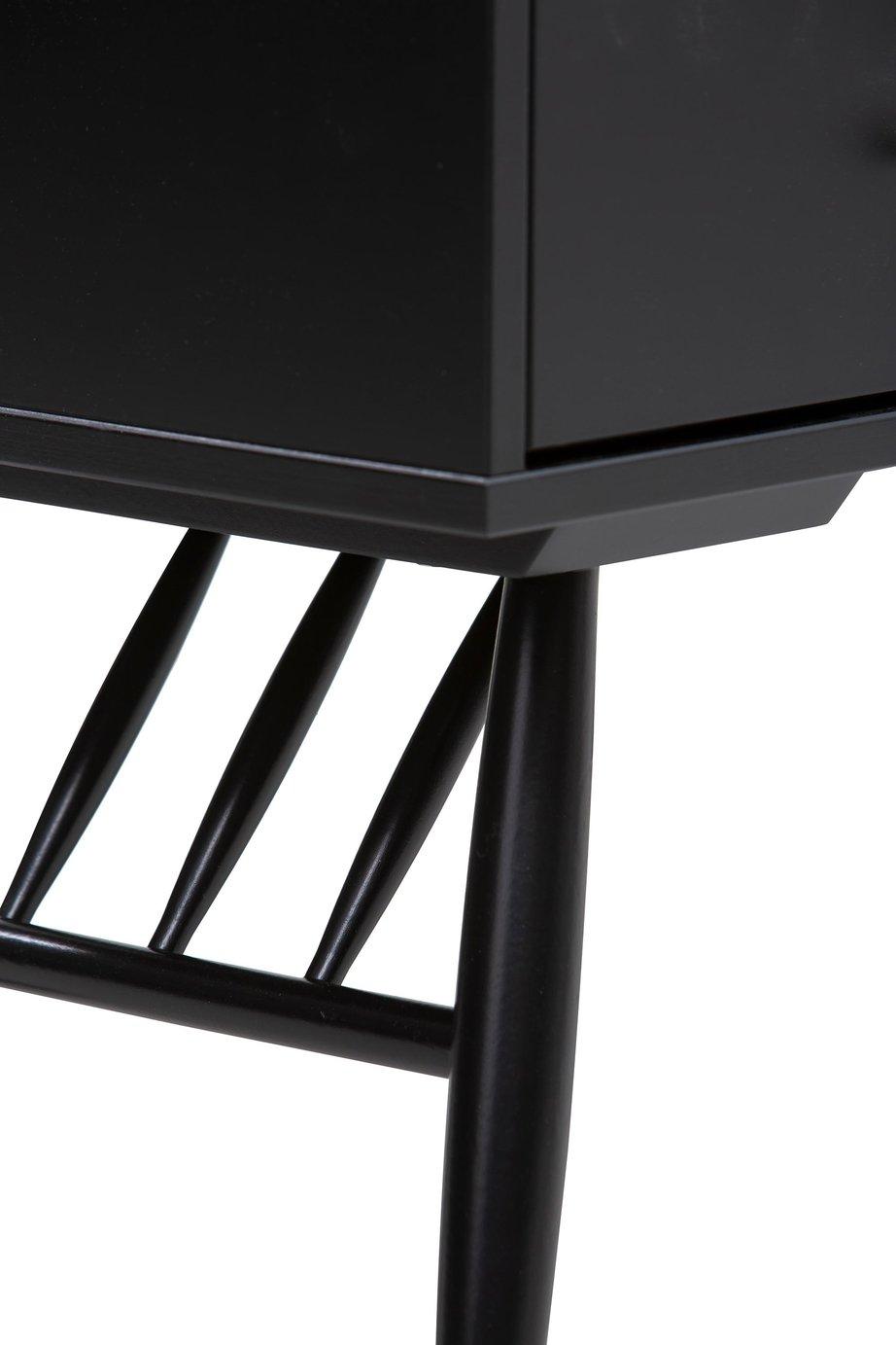 Mõõtmed: 114x40x105 cm Must kummut sisaldab kahte avarat kappi ja kolme praktilist sahtlit Pakub palju hoiuruumi erinevatele majapidamistarvetele, raamatutele või nõudele Must värv loob teie interjöörile moodsa ja stiilse ilme Valmistatud kvaliteetsest kasepuidust ja MDF-materjalist Kummutust on lihtne kokku panna, kaasas on selged juhised