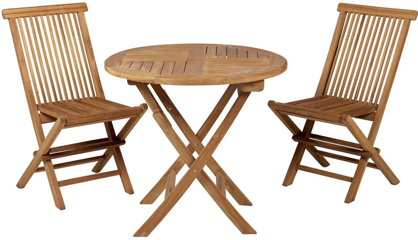 Kokkuklapitav tiigipuust laud ja toolid.