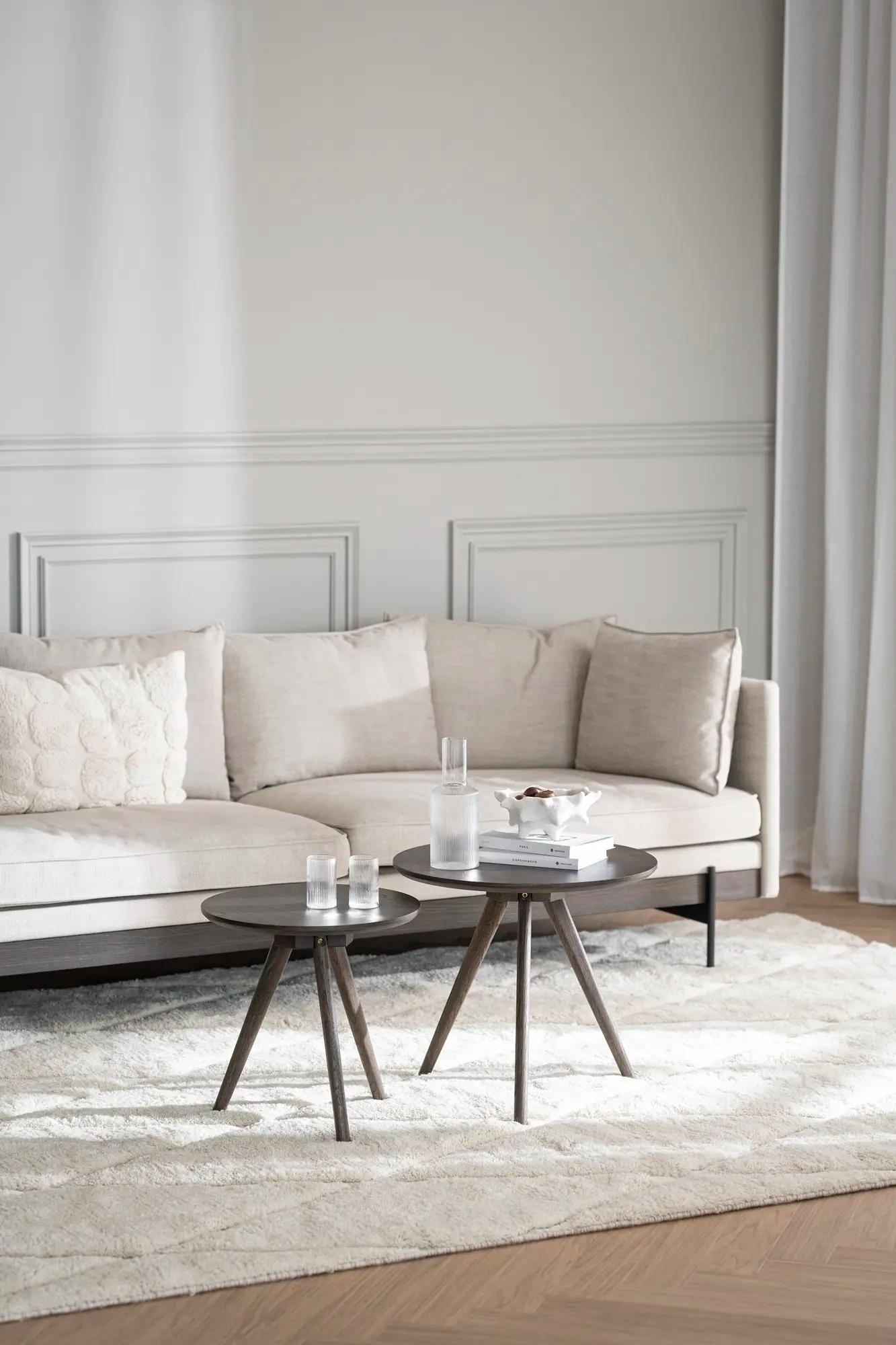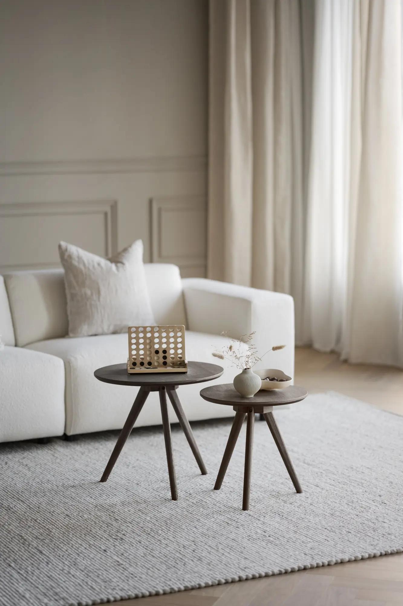Kaheosaline Yumi abilauakomplekt ajatu disainiga. Pruun tammespoon ja täistammest jalad, läbimõõdud 50 ja 40 cm.