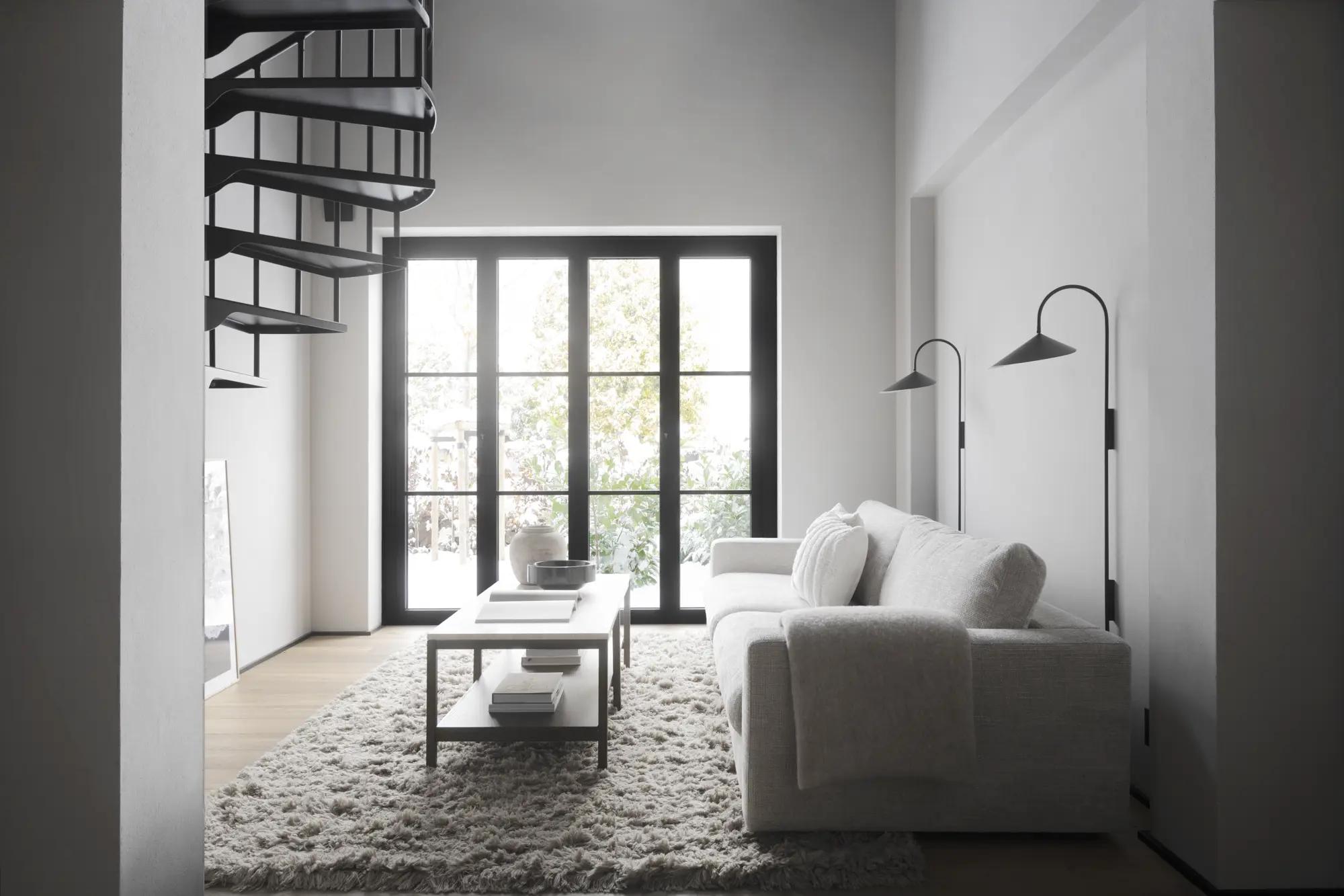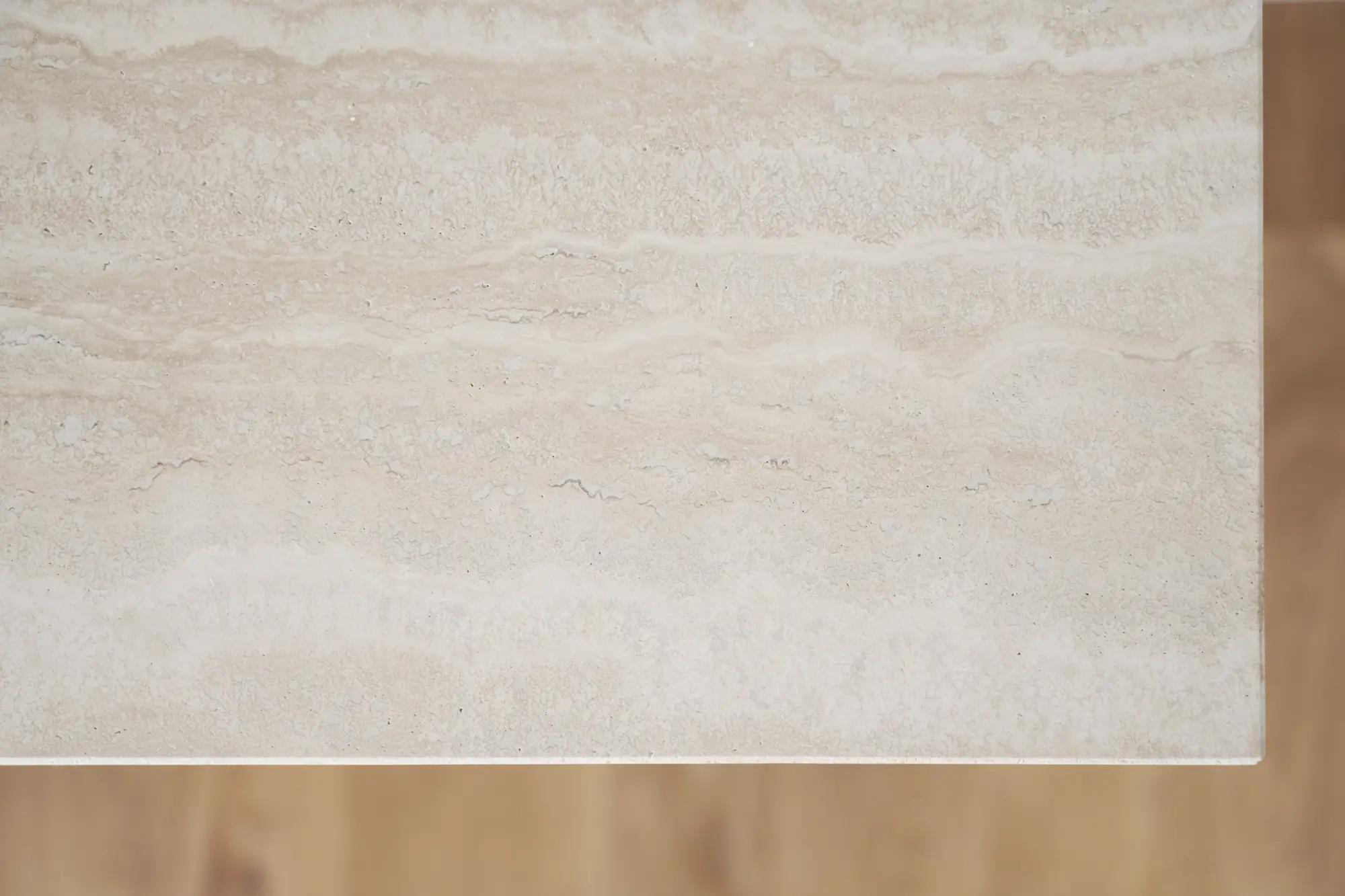 Stiilne tammepuidust raamiga diivanilaud travertiinist kiviplaadiga, millel on ajatu ja elegantne Skandinaavia disain.